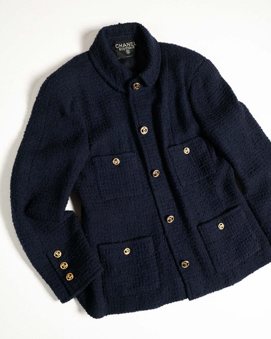 FR36 Rare Chanel Fall 1990 Four Pocket Wool Tweed Jacket