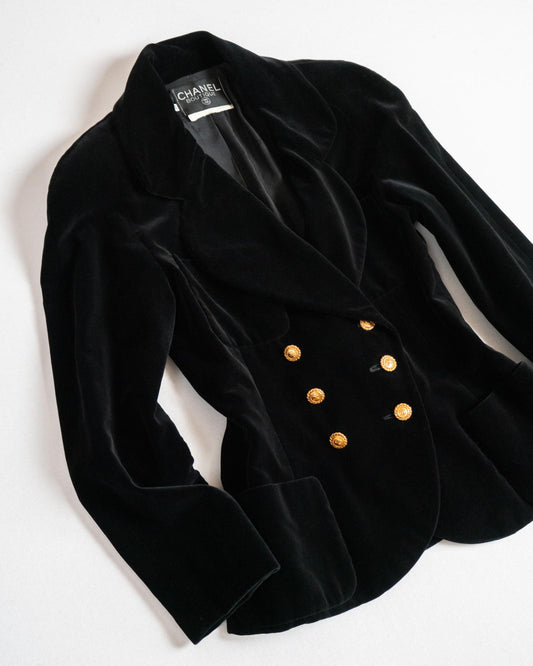 FR34-36 Chanel Fall 1988 Double Breasted Black Velvet Jacket