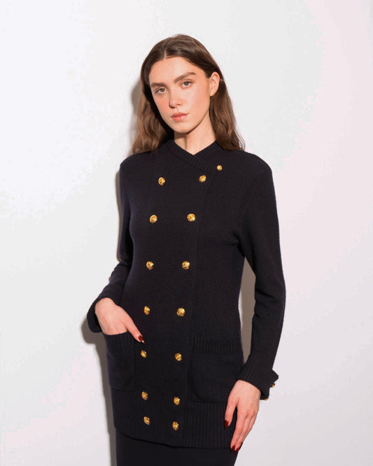 FR36-38 Chanel Fall 1998 Four Pocket Black Cashmere Jacket