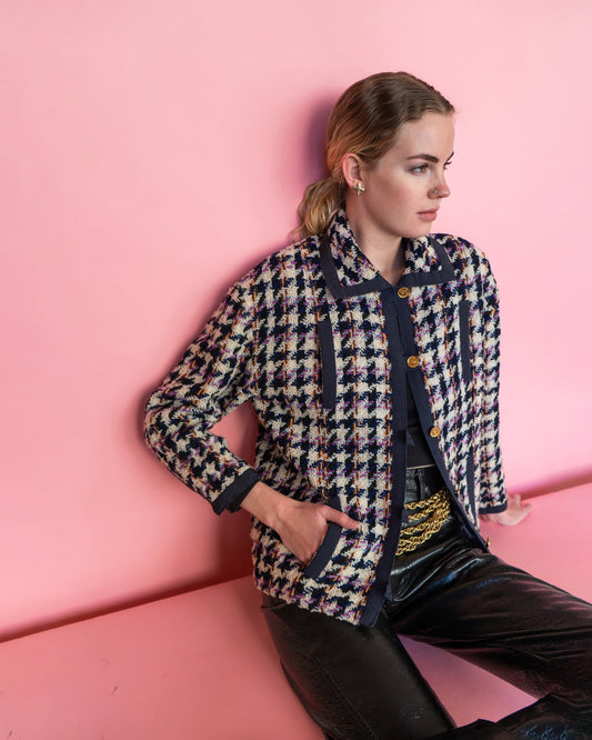 FR38-42 Chanel Fall 1987 Four Pocket Jacket in Multicolor Houndstooth Tweed