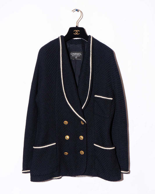 Our curated selection of vintage Chanel jackets includes rare finds from the 1980s and 1990s. Featuring iconic tweed, gold-plated buttons, and signature silk linings, each piece is authenticated and hand-selected. Browse our collection for timeless Chanel craftsmanship.