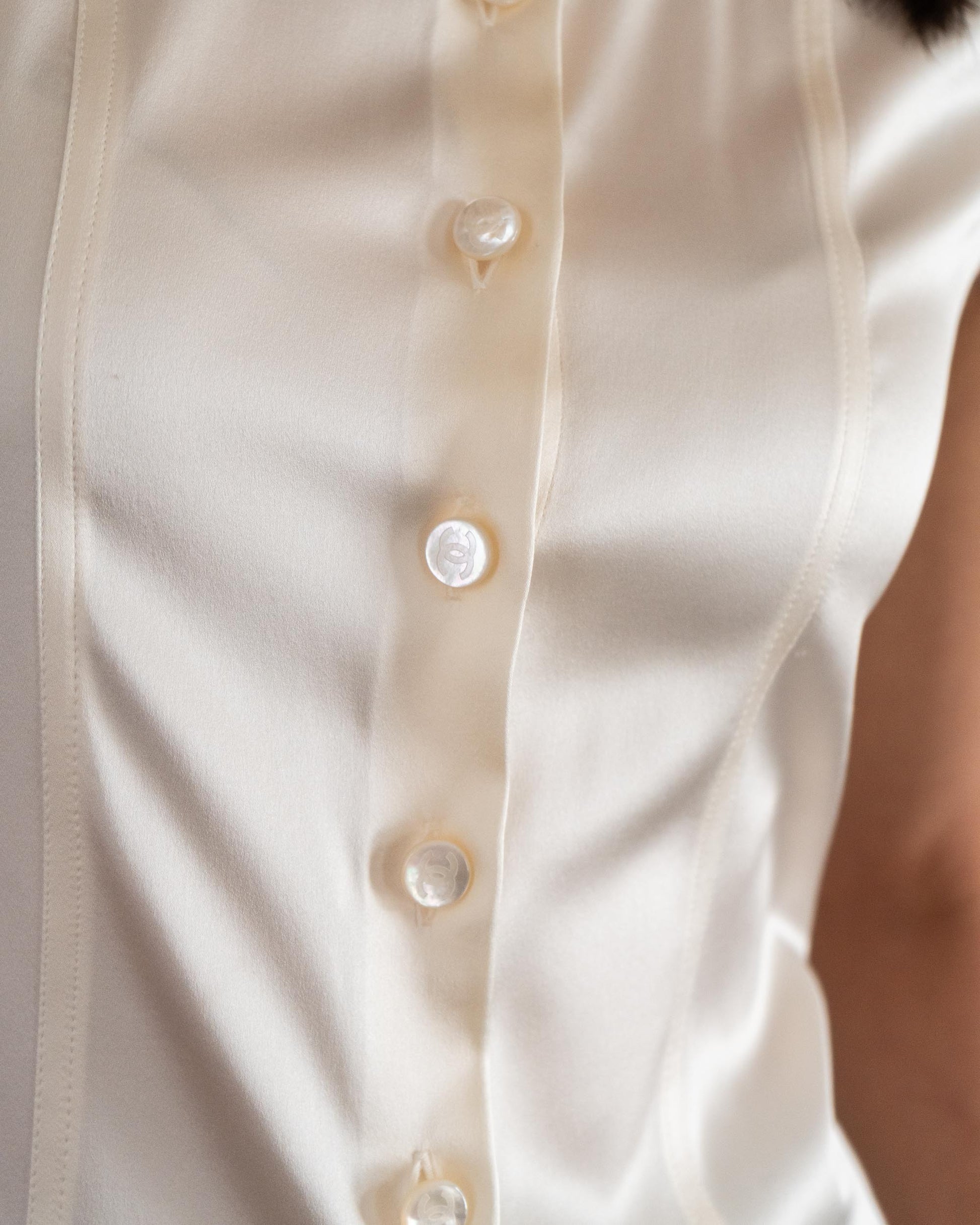 FR34-36 Chanel Cruise 1996 Sleeveless Ivory Silk Top - New With Tags