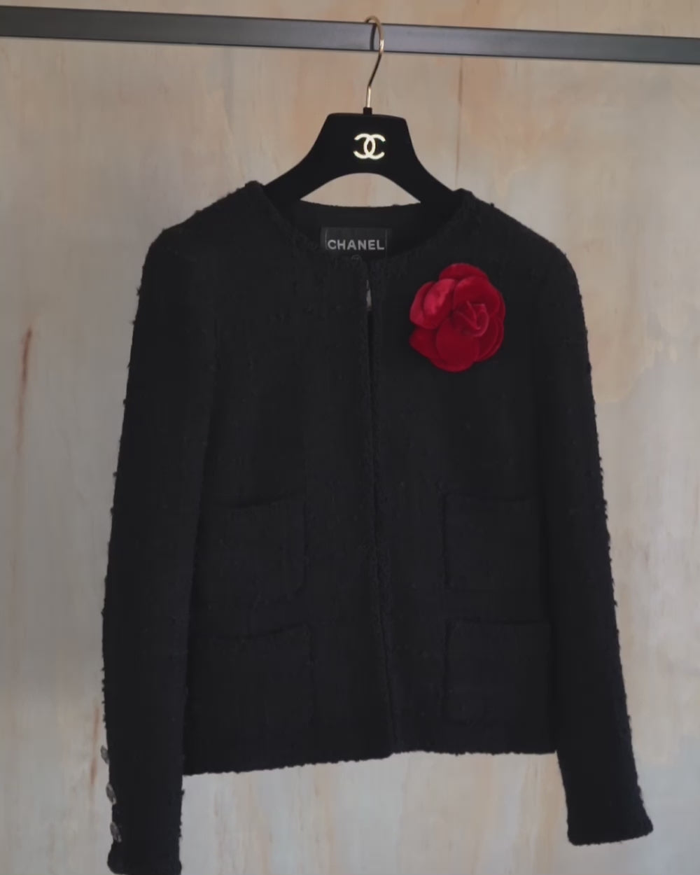 Last but not least, we meticulously measure each jacket to understand both its form and fit. This helps us provide you with comprehensive descriptions of every collectible Chanel jacket in our store. At the same time, we take detailed images so you can easily see the condition and features of the rare design. Finally, we choose just the right moment for the big reveal, to show you our latest precious treasures ready to travel to their new homes.