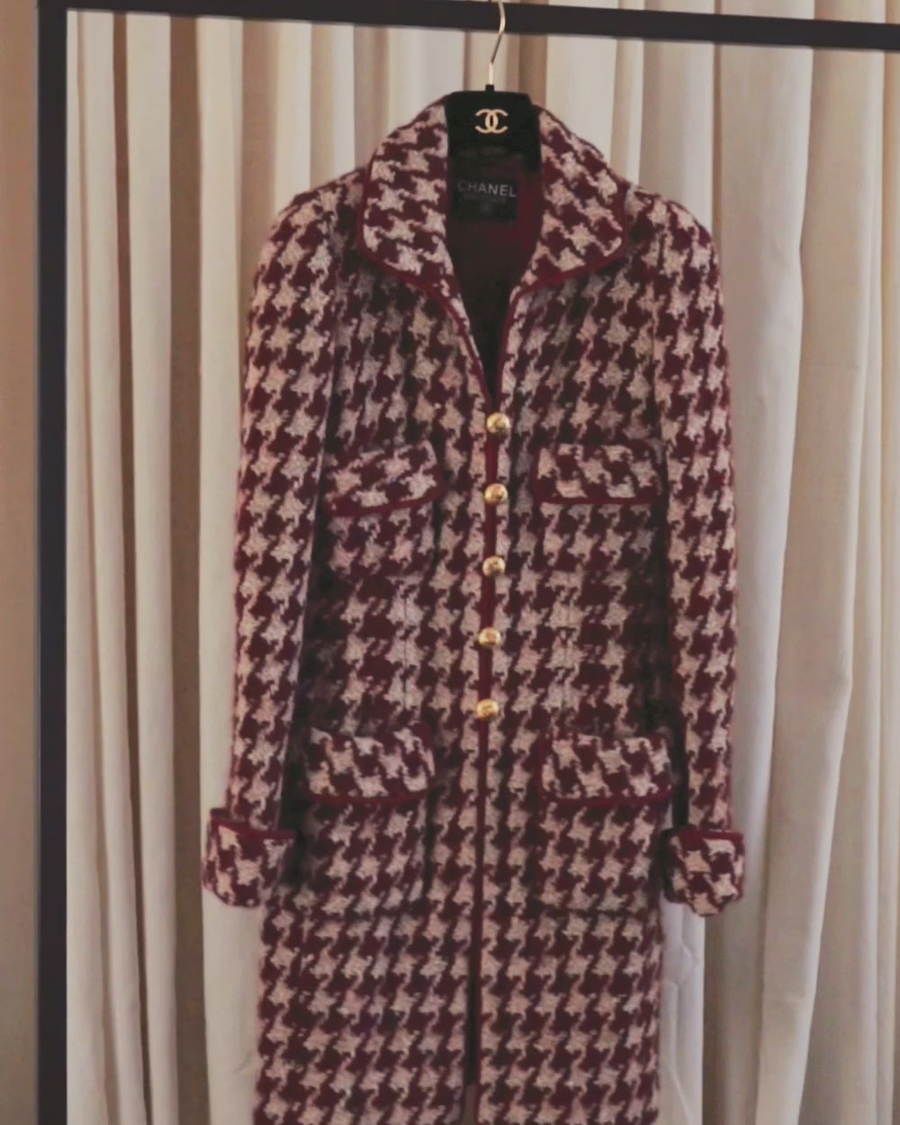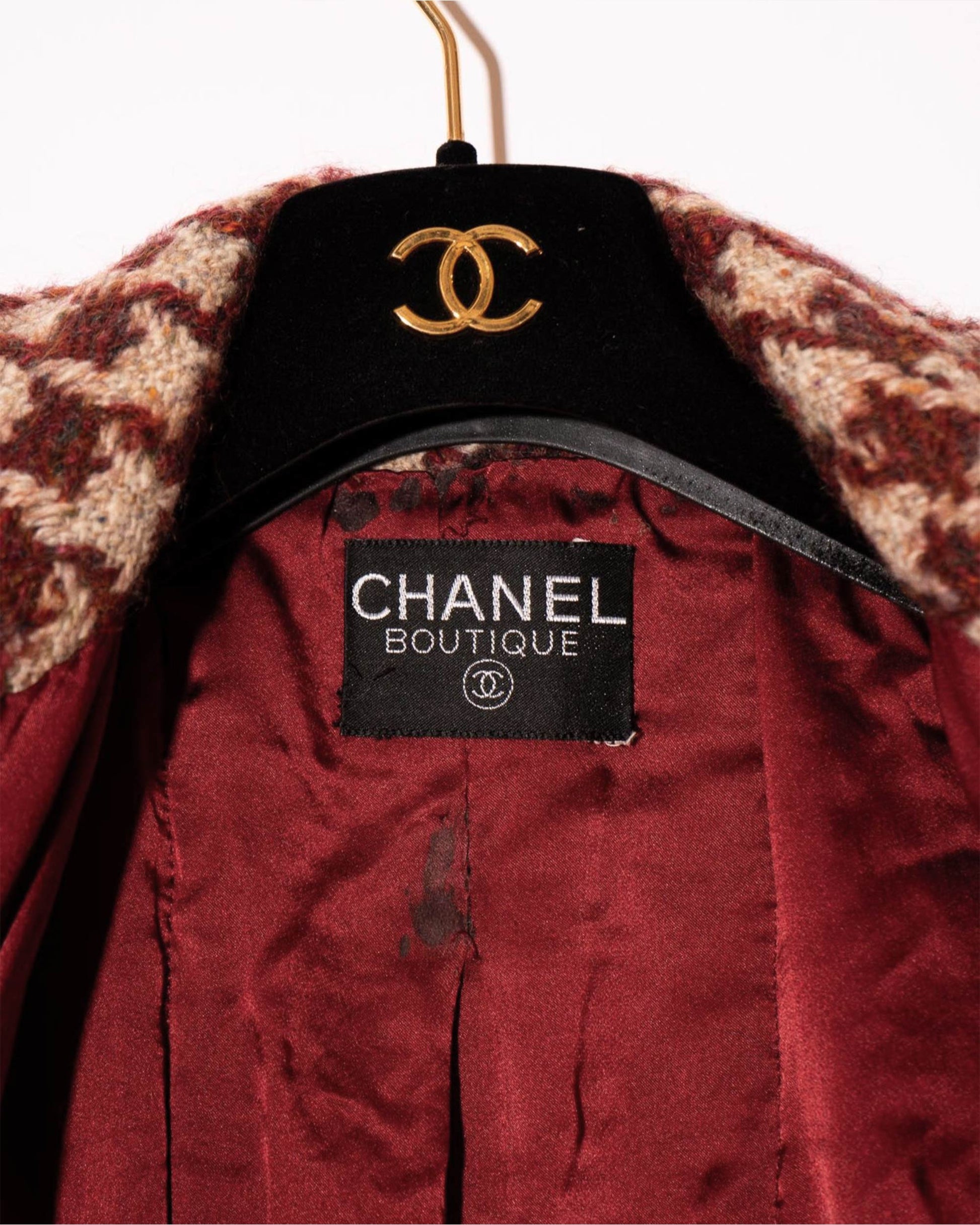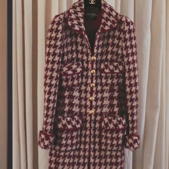 FR34-36 Rare Chanel Fall 1990 Four Pocket Houndstooth Tweed Coat