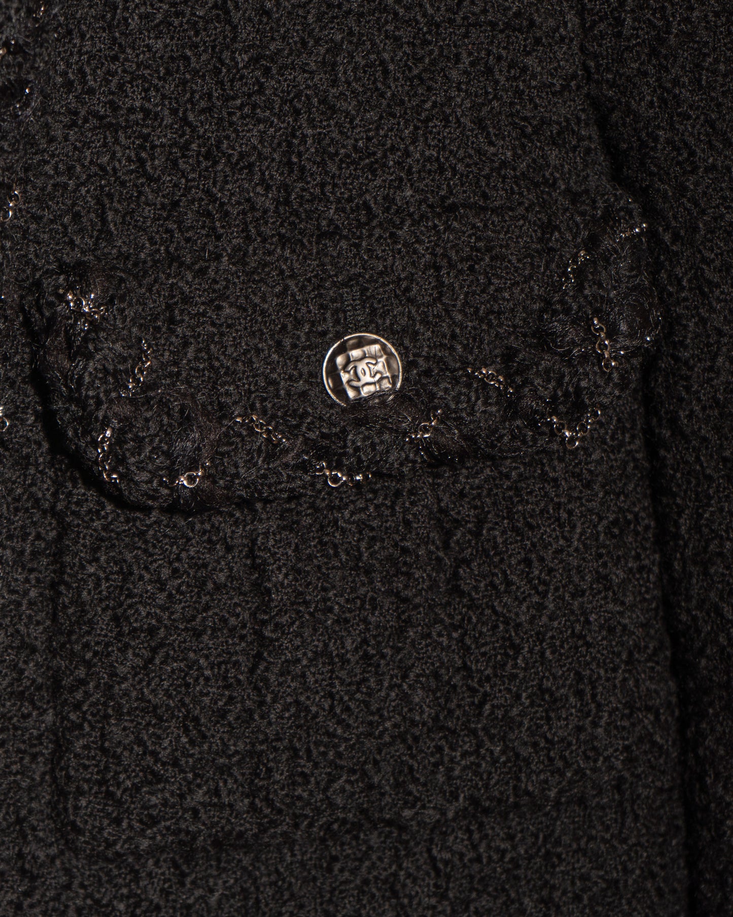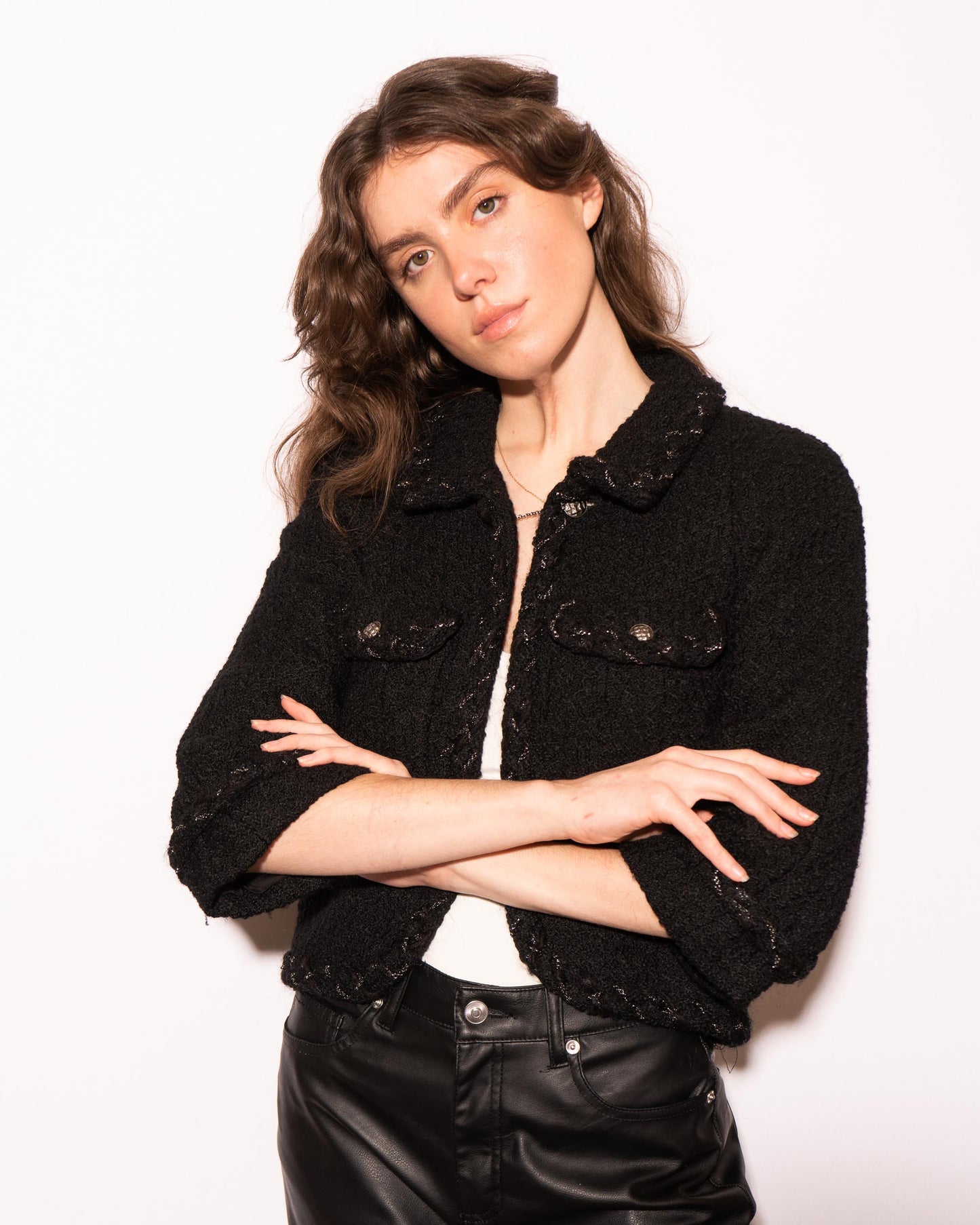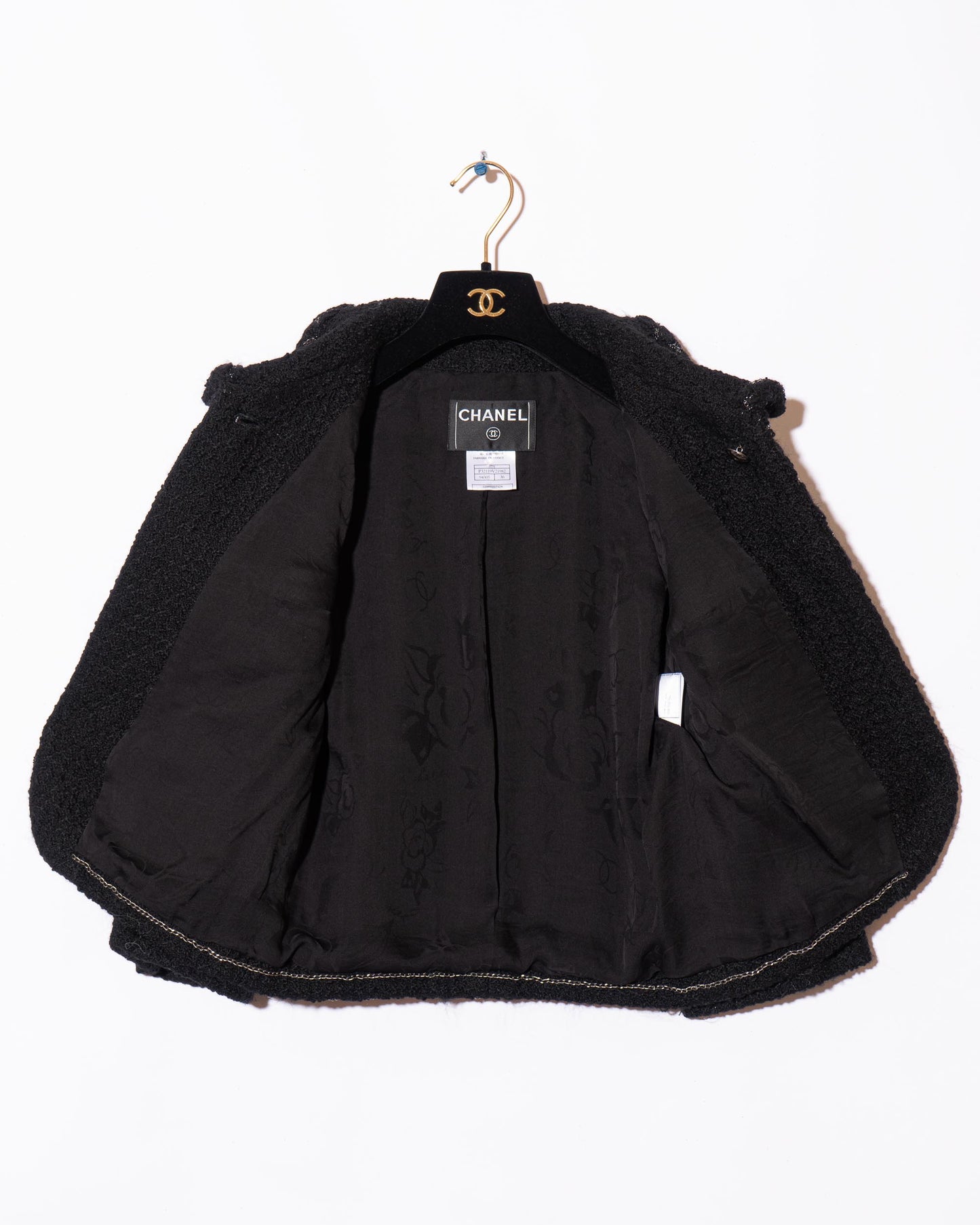 FR36 Chanel Fall 2007 Cropped Two Pocket Metal Detail Trim Black Tweed Jacket