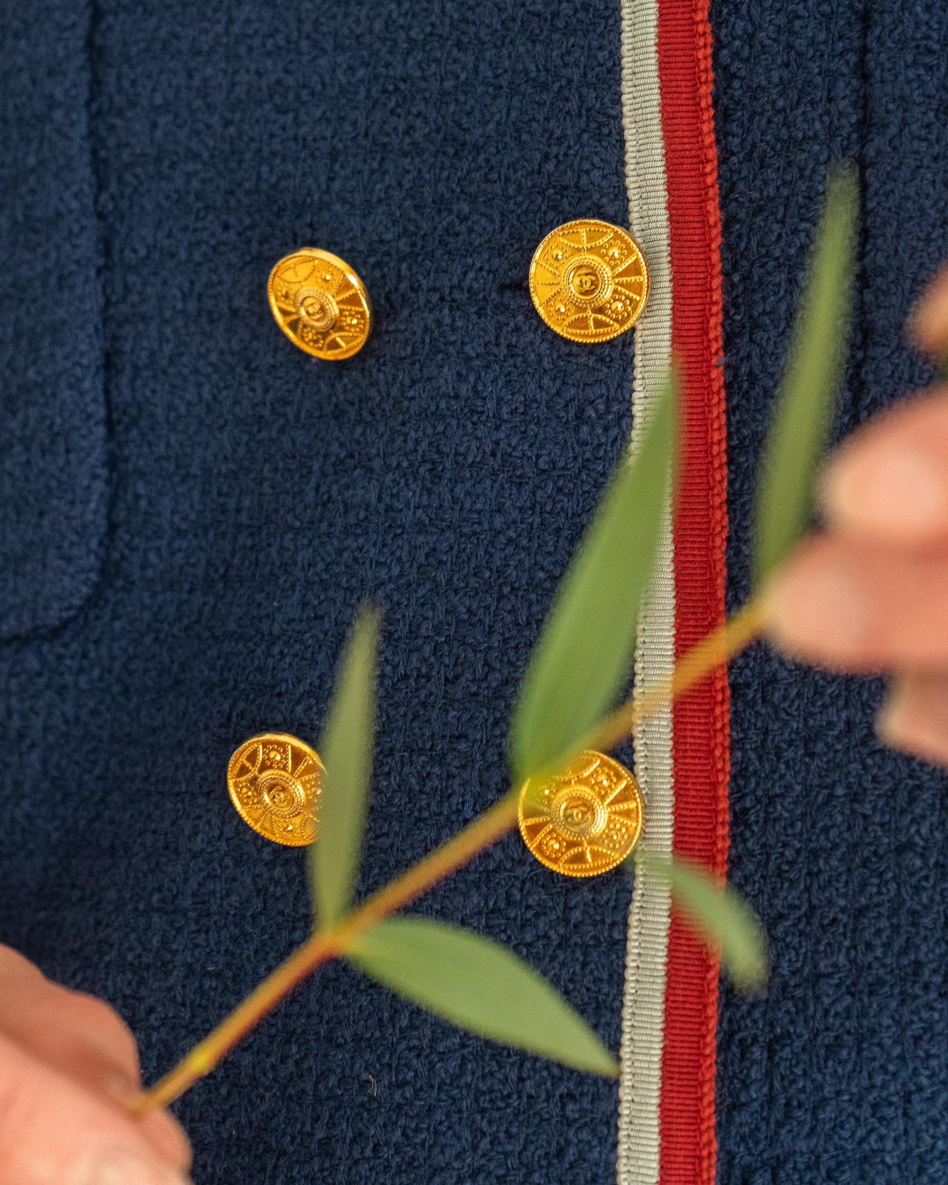 After the jacket has been authenticated, we work our magic to bring the item back to its original glory. Many of the timeless jackets we source were created from anywhere between the 60’s to the 00’s, including one of a kind haute-couture pieces. The jackets carried the stories of the amazing women who wore them and now need a little extra love and care. We condition the jackets, repair when needed, and remove any imperfections by hand during an elaborative and time consuming process. If any buttons are missing, we take the time to source hard to find original vintage buttons, which can take up to months to secure.