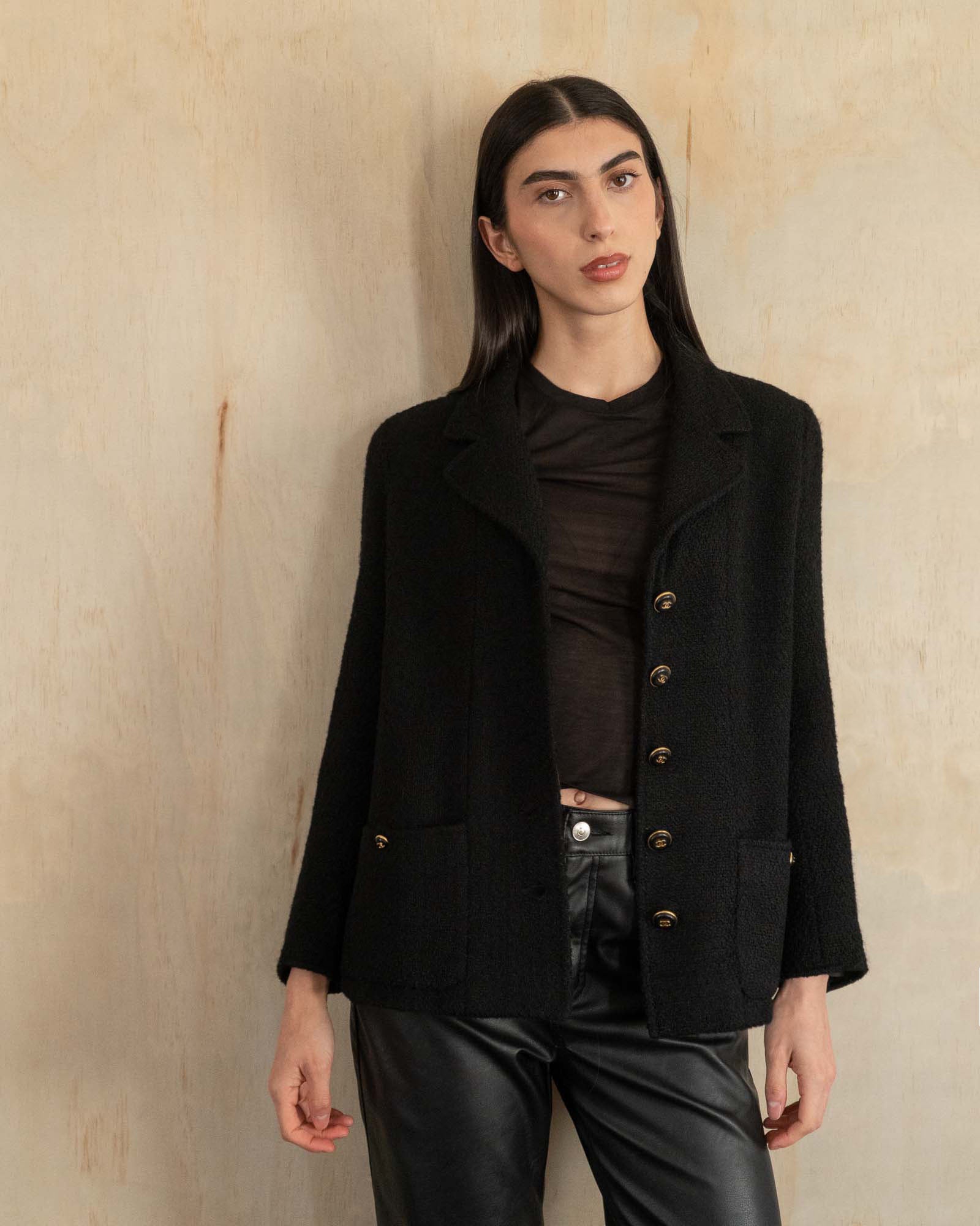 A timeless black tweed that works with everything and always feels refined.