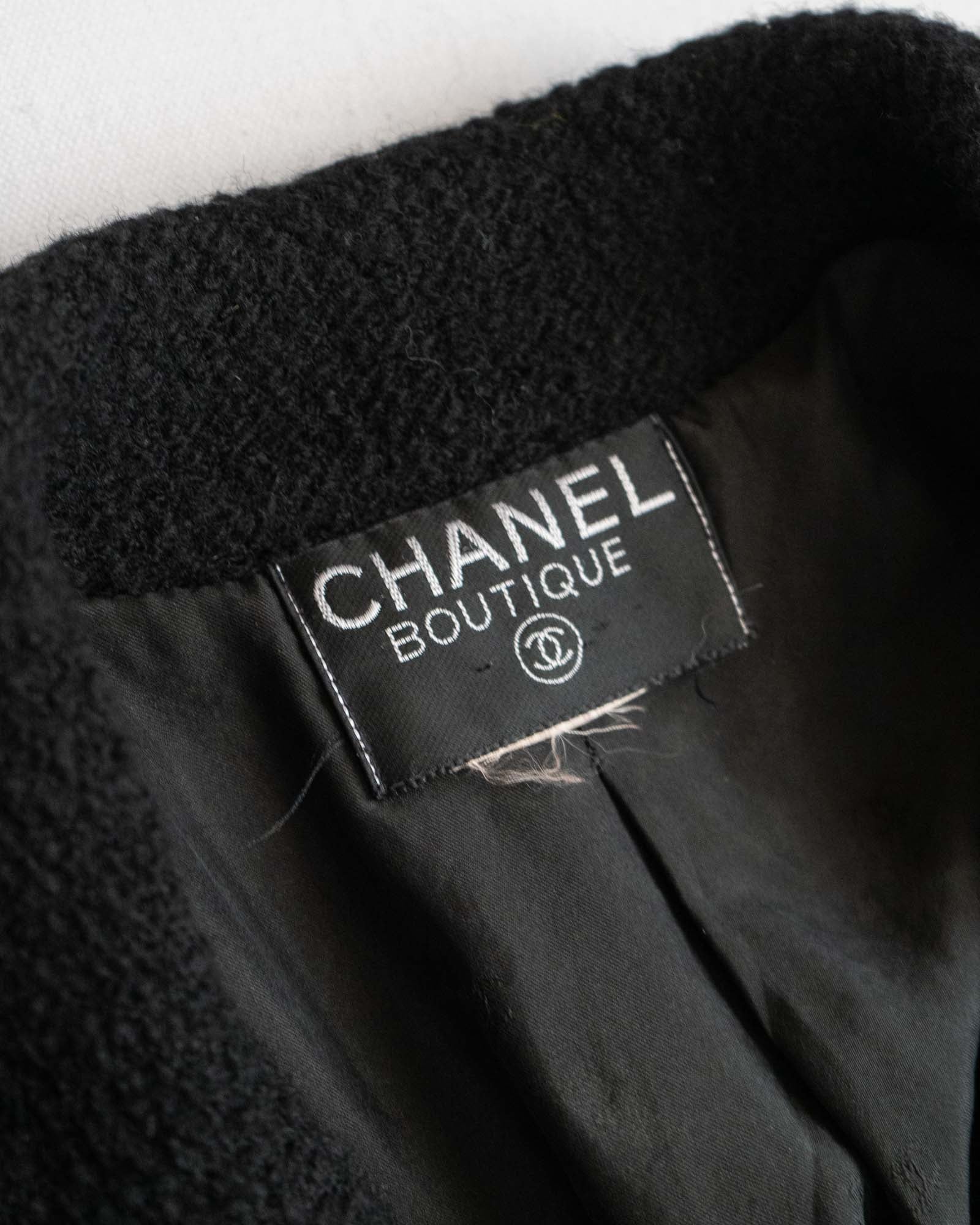 FR40-42 Chanel Fall 1995 Two Pocket Black Wool Tweed Jacket